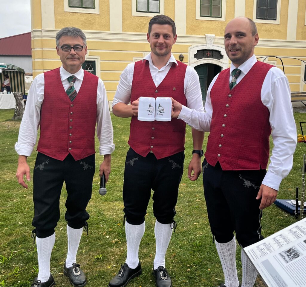 Am 16. August veranstalteten wir unseren diesjährigen Tag der Blasmusik im Pfarrhof Theiß. Trotz der mäßigen Wetterprognose durften wir viele Gäste bei uns begrüßen. Wir spielten 3 Teile mit einigen Märschen, Polkas und Potpourries und konnten uns in den Pausen mit den Gästen unterhalten. Den Abschluss machte dieses mal das Stück DANKESCHÖN von den F’aschtbänklern mit einem wunderschönen Klarinettensolo von Patricia. Besonders hat es uns gefreut Birgit und Patrick, sowie Paul und Lisa zu ihren Babies gratulieren zu können.
